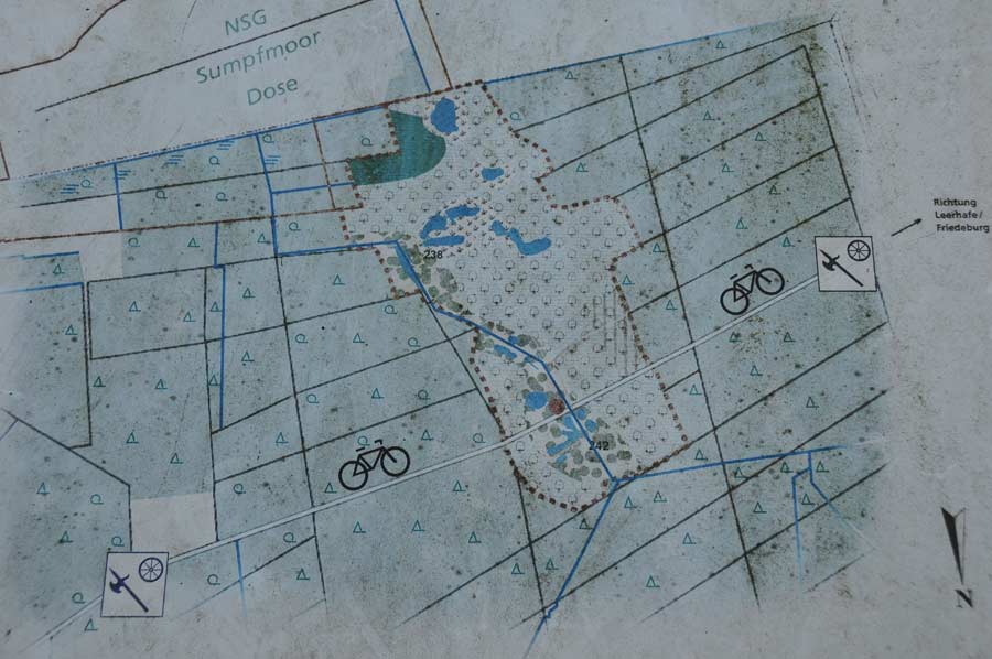 Unsere heutige Tour soll uns vom Forsthaus (wie bereits der Name sagt, eine ehemalige Försterei, heute Gaststätte) bis zum Braunen Hirschen (ehemaliger Bauernhof, heute Gaststätte) führen, nicht zuletzt aufgrund der am Weg angelegten Renaturisierungsflächen. Der Forst hat eine Ausdehnung von rund sieben Kilometer in der Länge und rund drei Kilometer in der Breite. Der von uns gewählte Rundweg hat eine Länge von 11 Kilometern. Am südwestlichen Rand des Waldgebiets schließt sich das 43 Hektar große Naturschutzgebiet Sumpfmoor Dose an.