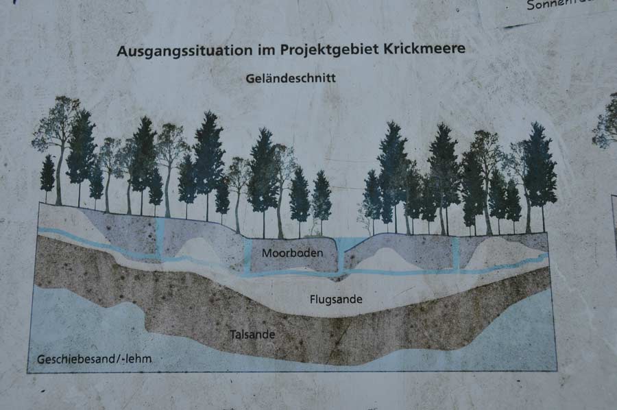 Die beiden letzten Eiszeiten - Saale- und Weichseleiszeit - prägen das Relief des Upjeverschen Geestrückens. In dieser Zeit bildeten sich die für die oldenburgisch-ostfriesische Geest typischen Moore und Binnengewässer, die in Norddeutschland Meere (Zwischenahner Meer) oder Krickmeere genannt werden, ihren Namen erhielten sie vor allem auch von den auf den Moorseen lebenden Krickenten. Seit Mitte des 18. Jahrhunderts wurden umfangreiche Entwässerungsmaßnahmen durchgeführt, um den hier vorhandenen Brenntorf abbauen zu können.