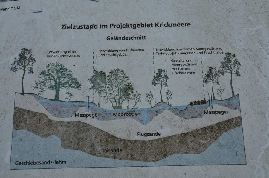 Inzwischen sind im Forst Upjever drei Renaturierungsprojekte umgesetzt bzw. begonnen worden. Im Jahr 2005 war der erste Abschnitt im Bereich der Krickmeere wieder in ein Moorgebiet verwandelt worden. Das Wasserabfluss wurde gezielt verhindert und so stieg der Wasserspiegel von unten wieder an. Ab 2010/2011 wurde auch der zweite Teil der Krickmeere wieder vom Nadelholz befreit und als Moor wiederhergestellt.