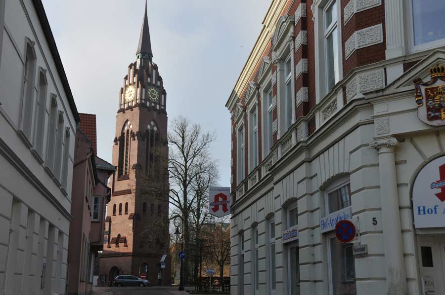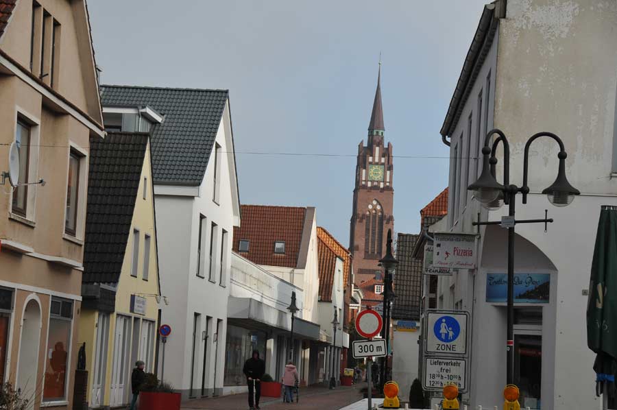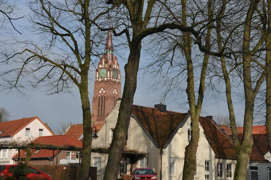 Glockenturm - Gleichgültig, von welcher Seite aus man sich der Altstadt von Jever nähert, immer drängt sich der Glockenturm als zweithöchstes Gebäude der Stadt in den Bildmittelpunkt.
