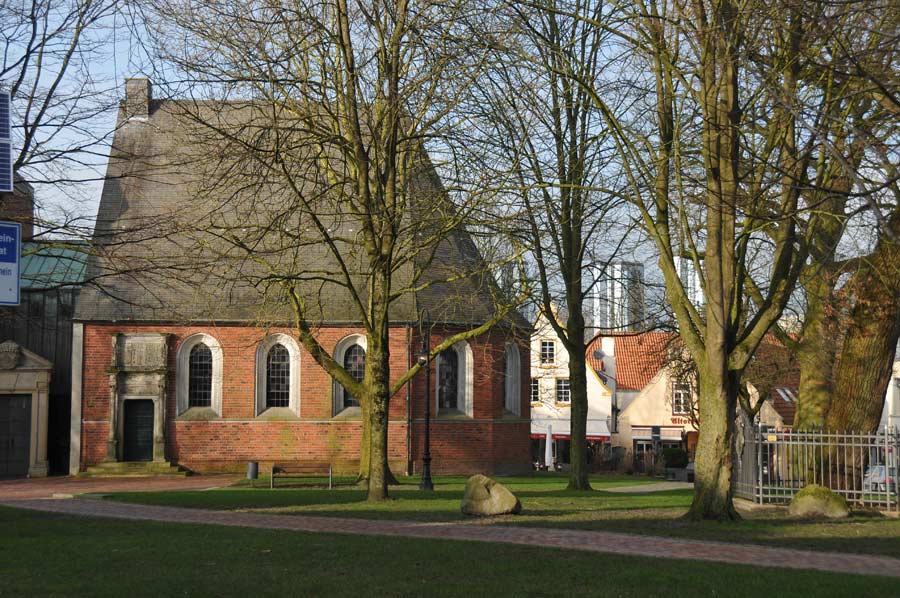 Und wie bei vielen friesischen Kirchen steht auch der Glockenturm in Jever separat neben der Kirche. Die Gründe dafür liegen in der Historie; aber besonders sind es die Probleme der Statik auf dem grundwassernahen Untergrund. Der Glockenturm steht hier auf einer Höhe von 12,56 m ü / NN, aber dazu später mehr.