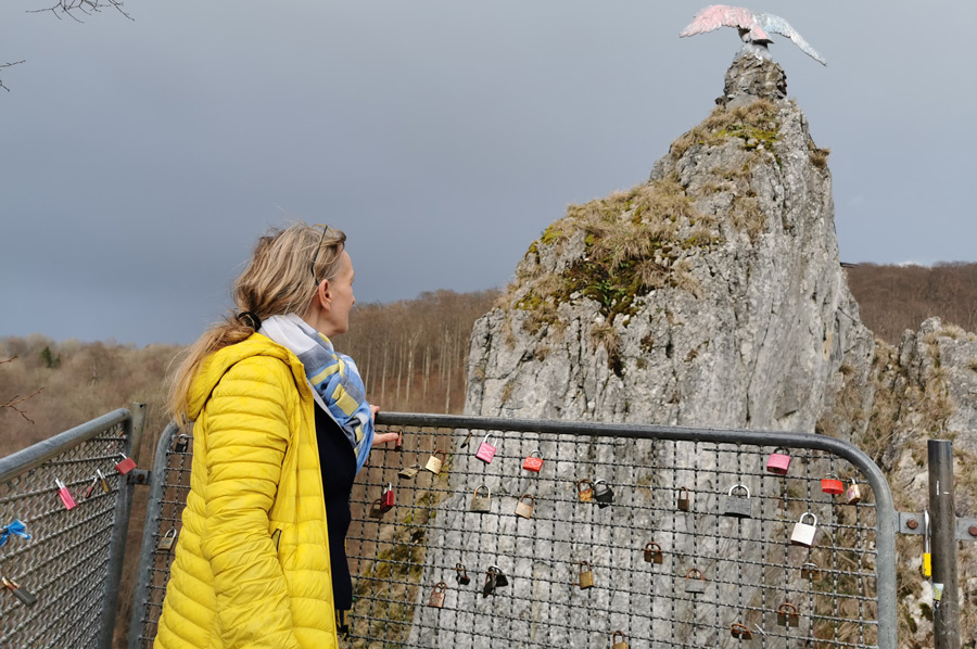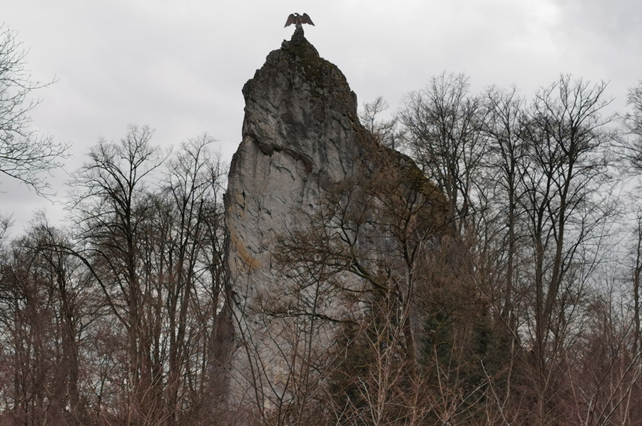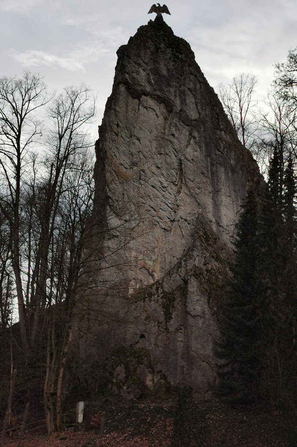Eigentlich ist der Hübichenstein „nur“ ein Kalkfelsen mit zwei miteinander verbundenen Felsnadeln, die als aufragende Reste des einstiegen Korallenriff Harz übriggeblieben sind.