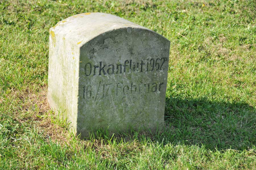 Trotzdem war auch Dangast von der schweren Flutkatastrophe vom 16. Und 17. Februar 1962 schwer betroffen. Große Teile des Strandes wurden weggerissen, nahe gelegene Gebäude schwer beschädigt und die Rennweide wurde komplett überschwemmt. Allein die Höhenangaben auf den Gedenksteinen am Hafen lassen die Macht der Flut deutlich werden.