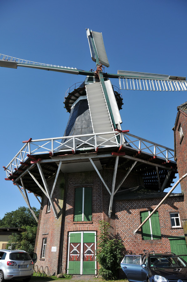 Wir hörten all diese Geschichte mit großer Verwunderung, denn die Nordsee erschien von hier aus so fern zu sein. Unsere Rückfahrt gestaltete sich ähnlich entlang der Kanäle, allerdings kehrten wir auf Kaffee und Kuchen noch in der Rütteler Mühle ein, die sich ebenfalls als ein tolles Naherholungsziel anbietet. Neben der Hauptmühle, die immer noch betrieben wird, sind hier einige Mühlenexemplare als funktionsbereite Modelle zu sehen, die vom Holländer bis zur Bockmühle einige Exemplare heimischer Mühlenarten zeigt. Der hausgemachte Kuchen mit Blaubeeren war einfach himmlisch.