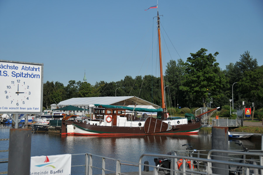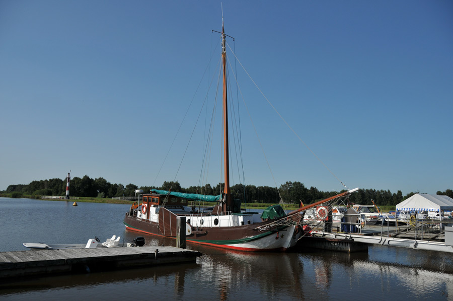 So tummelten sich neben einem Fahrgastschiff, das regelmäßig in Richtung Emden fährt auch zahllose Schiffe von privaten Eignern im Hafen von Barßel. Selbst einen Leuchtturm konnten wir entdecken, doch recht ungewöhnlich, so weit vom Meer entfernt.