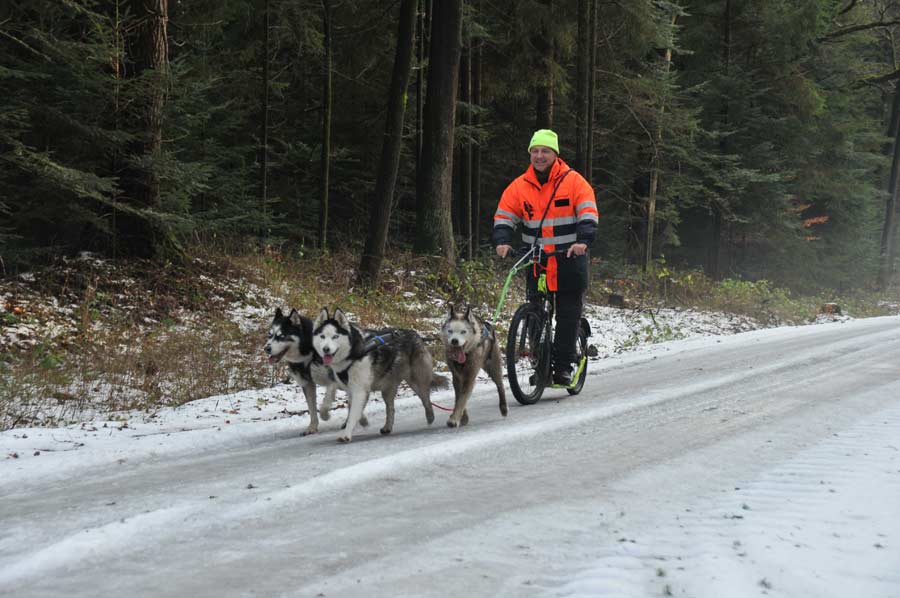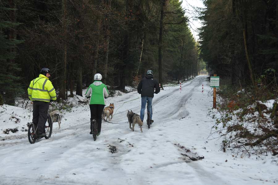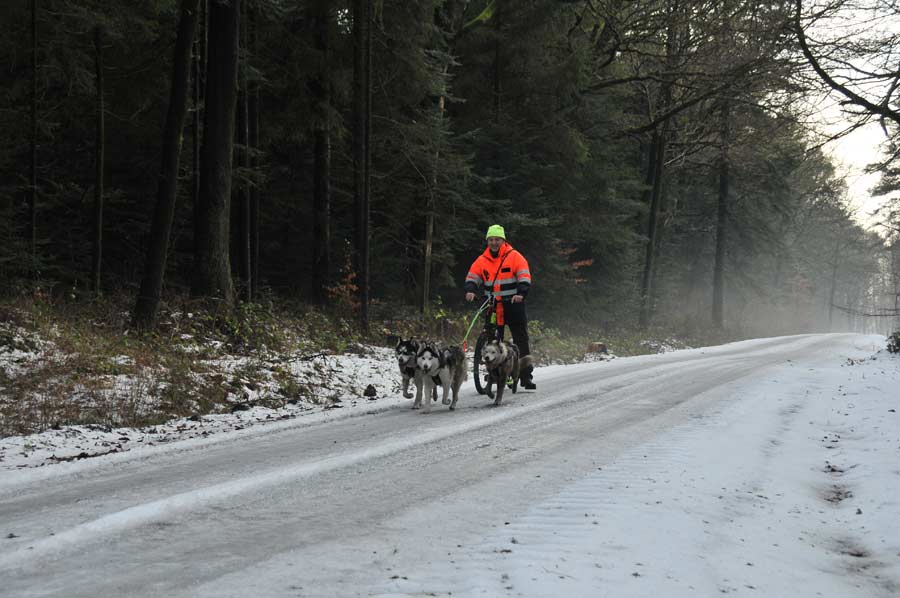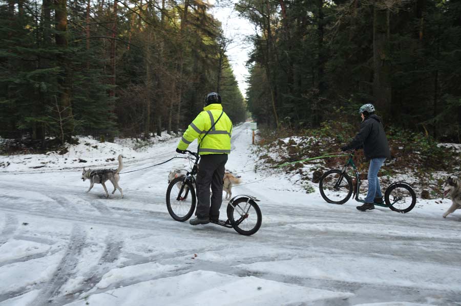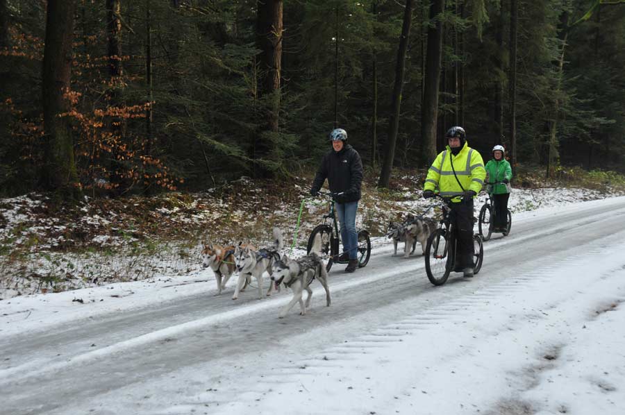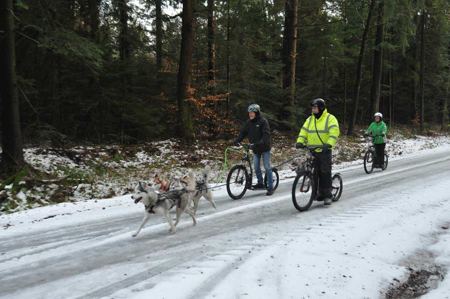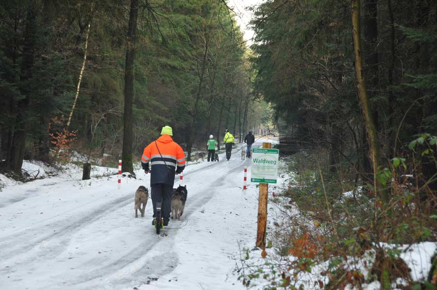 Einmal mehr waren wir auf einem Rundwanderweg im Forst Upjever unterwegs, als wir Anfang Januar auf vier Gespanne von Off-Road-Rollern trafen, die von Schlittenhunden gezogen wurden. Eine nicht erwartete Begegnung, aber der Reihe nach.