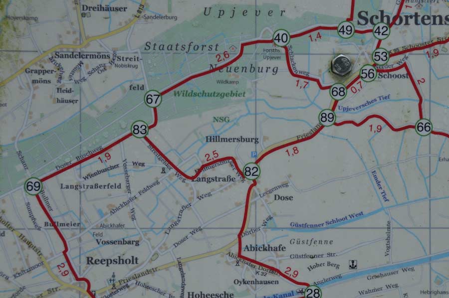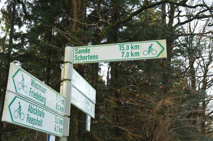 Als Einstieg in die kommende Outdoor Saison, auch vor dem Hintergrund zumindest nicht völlig untrainiert und mit viel Winterspeck bepackt, die ersten Wanderungen im Rahmen unseres Projekts anzugehen, waren wir im Norden Deutschlands auf Erkundungstour, diesmal durch den Forst Upjever. Gut gekennzeichnet Wege ermöglichen hier Wanderungen zu Fuß oder mit dem Fahrrad, die in der Verknüpfung mit weiteren Routen durch interessante, sich abwechselnde Landschaften führen. Wie so oft zeigte sich zwar der Himmel typisch für die Jahreszeit in bewölktem Grau mit Temperaturen um den Gefrierpunkt, trotzdem war es wieder ein Erlebnis durch den noch vorhandenen, hart gefrorenen Restschnee zu gehen, der unter den Füßen zerknirscht. Manchmal recht interessant, wohin die Gedanken so schweifen, kamen wir doch auch auf das Thema Wölfe zu sprechen, wahrscheinlich inspiriert durch die Vorbeifahrt am Denkmal des letzten, in der Region gefangenen Wolfes in Oestringfelde, dem so genannten Wolfsgalgen.