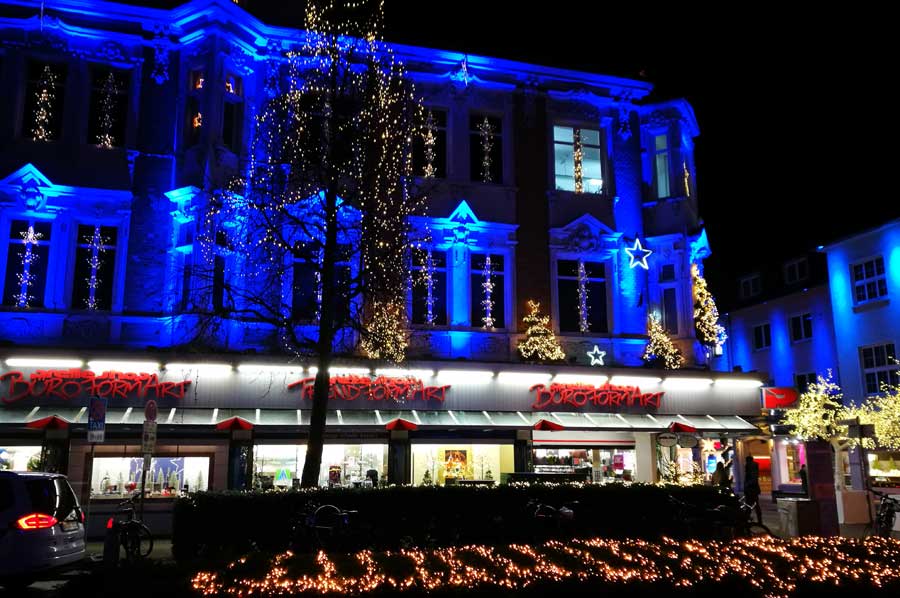 Bei leiser Weihnachtsmusik und stimmungsvoller Beleuchtung lässt sich zudem die vorweihnachtliche Hektik für einige Augenblicke vergessen. Kinder zieht es in die Weihnachtsbäckerei von 3-Sterne-Koch Thomas Bühner, der alle Jahre wieder Plätzchen in seinem Gourmet-Restaurant in der wunderschön beleuchteten Krahnstraße mit ihnen backt.