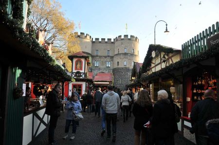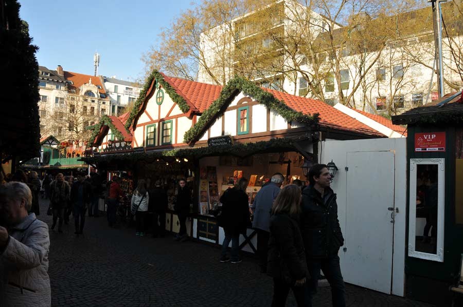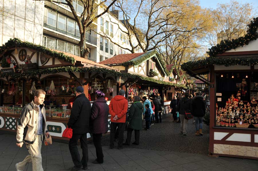 Direkt vor dem Hahnentor entführt das Nikolausdorf die früh morgendlichen Besucher bereits in eine eigene Welt. Besonders großer Wert wird von den Ausrichtern des Marktes auf die Familienfreundlichkeit gelegt. 60 Fachwerkhäusern nach empfundene Buden vermitteln weihnachtliche Atmosphäre. Gusseiserne Sitzbänke laden zum Verweilen während des Schlenderns ein. Für anheimelnde Beleuchtung sorgen hunderttausende LED-Lichtpunkte, die nicht nur an den Buden, sondern auch in den Baumkronen angebracht sind.