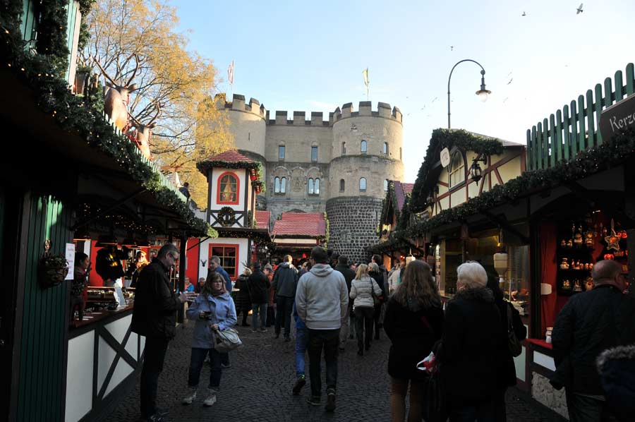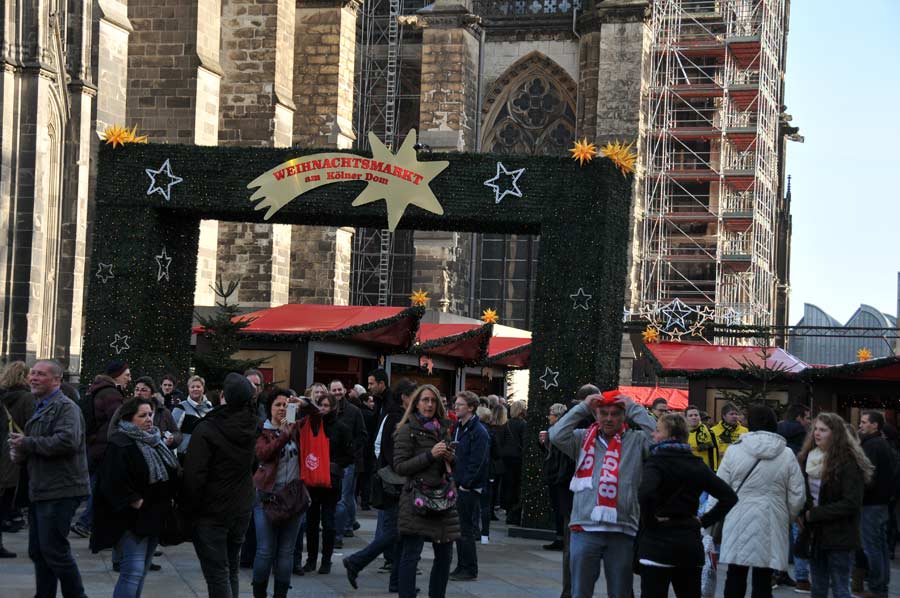 Nach einem kurzen Rundgang durch den Weihnachtsmarkt und dem Anlesen der Grundkenntnisse zur Hahnentorburg waren nur noch wenige Meter bis zum Kölner Dom und dem sich dort befindlichen Weihnachtsmarkt am Dom zurück zu legen, der sich mittlerweile sehr gefüllt hatte. Dieser schönste und bekannteste Weihnachtsmarkt, so zumindest die Meinung vieler Gäste, befindet sich in traumhafter Lage direkt vor dem Kölner Wahrzeichen, dem Kölner Dom.