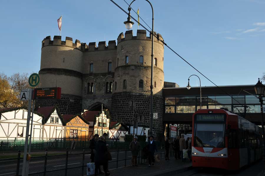 Wenig LKW-Verkehr und auch sonst gute Fahrbedingungen machten es möglich, noch vor dem vereinbarten Zeitpunkt des vereinbarten Zusammentreffens in Köln zu sein. Was lag also näher, als noch einen kleinen Rundgang durch die Innenstadt von Köln zu unternehmen, bis der Zeitpunkt des Treffens anstand zumal wir uns am Rudolfplatz verabredet hatten. Klar das der erste Blick auf den kleinen Weihnachtsmarkt an der Hahnentorburg fiel, der sich gerade etwas mit Leben füllte.