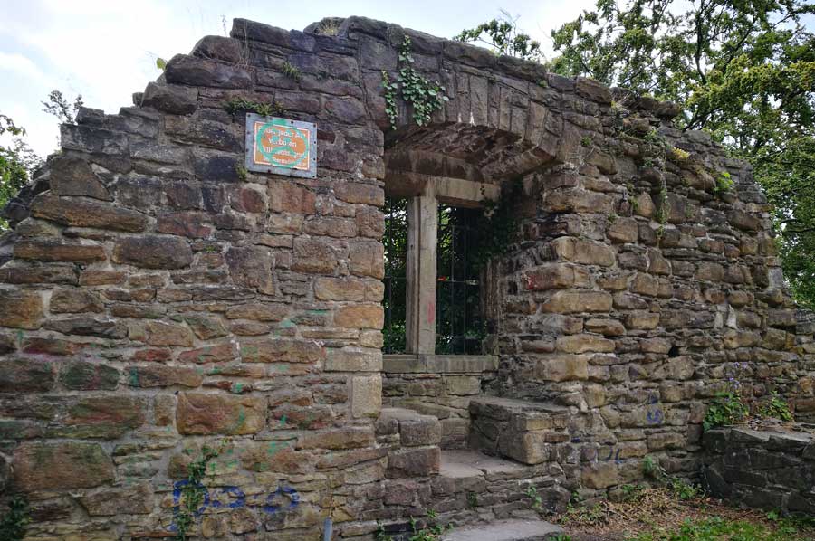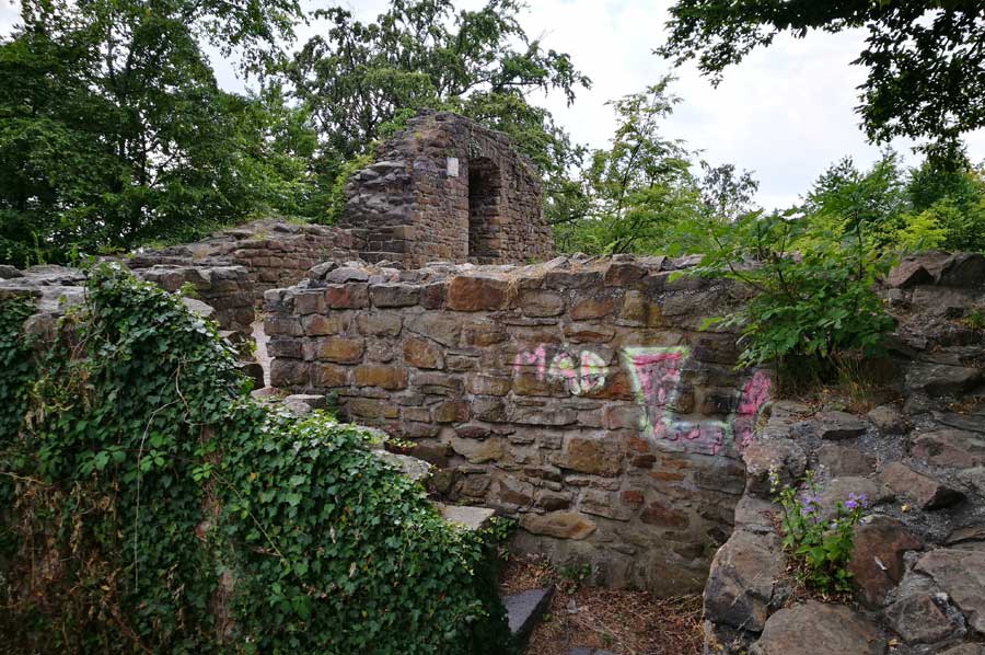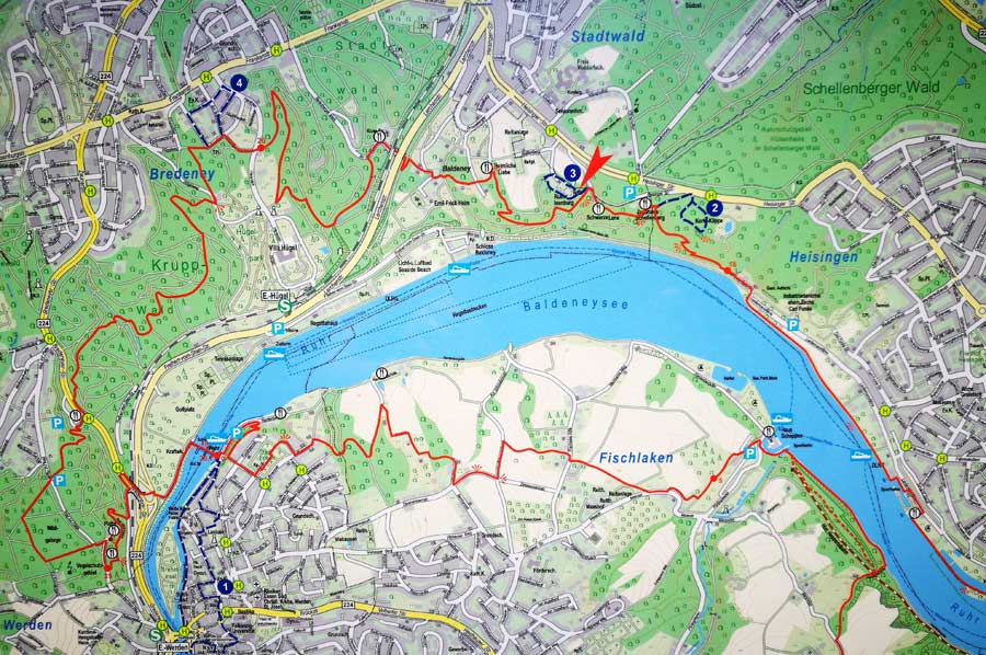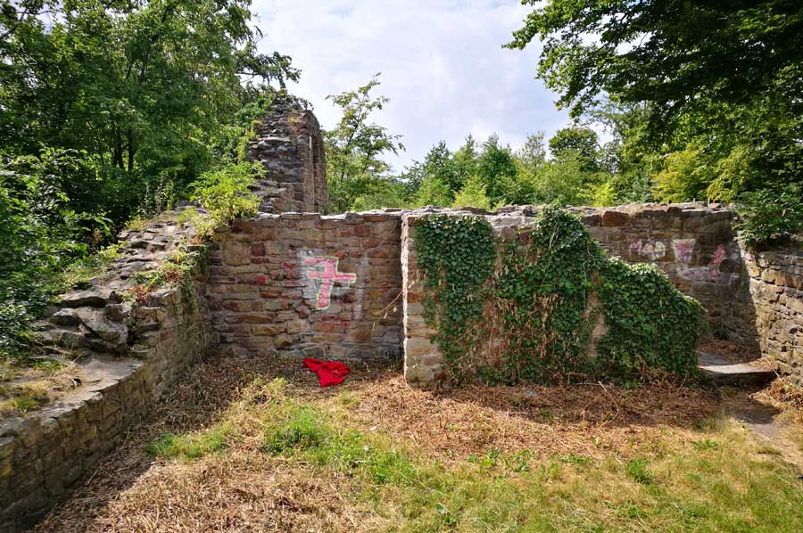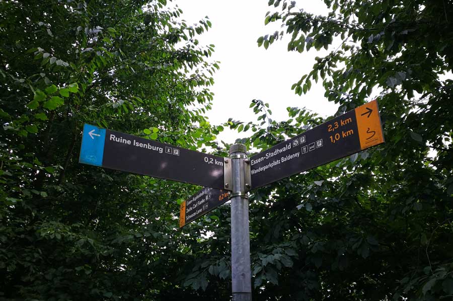 Das herrliche Wetter hatte uns erneut ins Freie an den Baldeneysee bei Essen gelockt, wo wir versorgt mit Kaffee, selbstgebackenen Waffeln, nicht mehr ganz heißen Kirschen und Schlagsahne die Burgruine Neue Isenburg erwandern wollten, die im Essener Stadtteil Bredeney liegt.