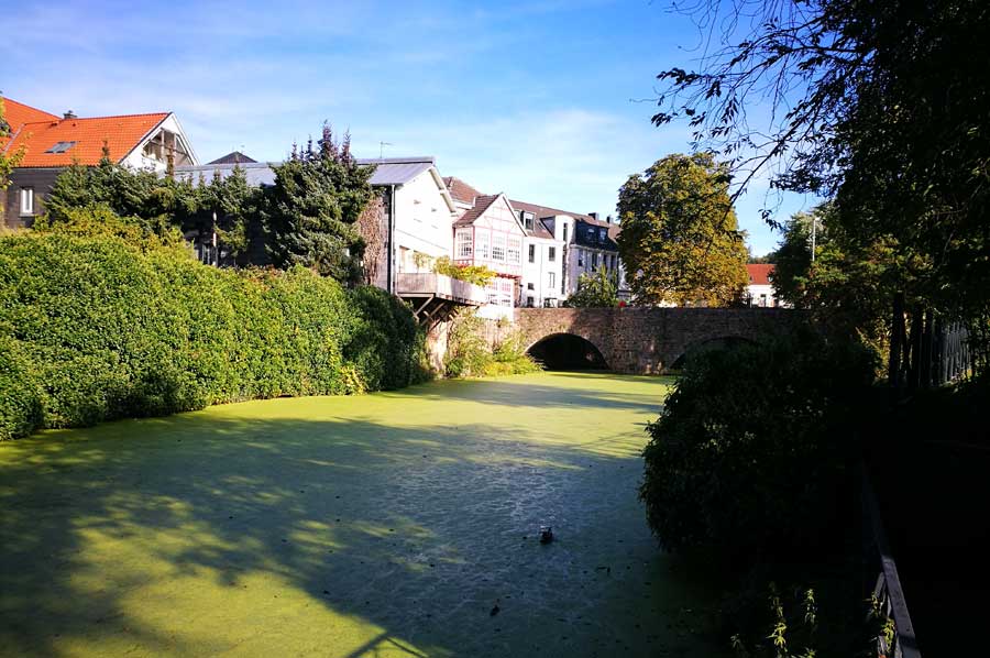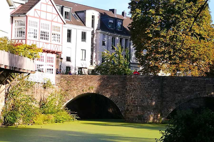 Kein Wunder also, das der Ort von Naherholungsgebieten umgeben ist, allen voran der Kettwiger See. Die historisch wertvolle Altstadt bildet das Zentrum, das wir über eine uralte Steinbrücke erreichen. Historisch gehört Kettwig, zusammen mit Werden und Mülheim an der Ruhr zu den nördlichsten Teilen des Bergischen Landes.
