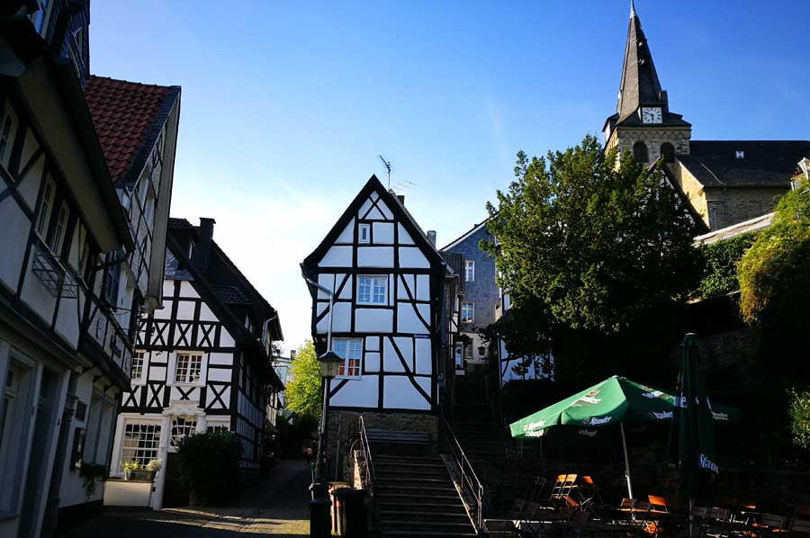 Die Altstadt mit zahlreichen Fachwerkhäusern ist in weiten Teilen erhalten, obwohl man auch dort zwischen 1975 und 1977 im Rahmen der Neugestaltung von Schulstraße und Bürgermeister-Fiedler-Platz einige noch intakte Fachwerkhäuser – darunter die Gaststätte „Zum Treppchen“ – einfach abgerissen hatte. Die Kirchentreppe und die umliegenden Häuser bilden eines der hervorragenden, erhalten gebliebenen Bau-Ensembles der historischen Altstadt. Sie war im Mittelalter Eigentum der Kirche und wurde erst um 1850 mit Treppenstufen und Geländer ausgebaut. Die Kirchentreppe gehört zu den vier alten Feuergassen zwischen der Ruhr und dem so genannten Oberdorf und wird erstmals 1368 erwähnt. Die Häuser an der Kirchentreppe gehören damit zu den ältesten mittelalterlichen Gebäuden der Stadt.