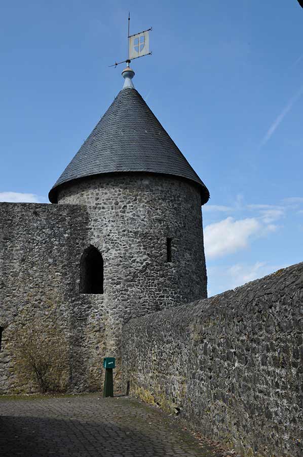 Zunächst und noch als reine Fluchtburg geplant und umgesetzt, war nur die rechteckige Kernburg gebaut worden. Unter dem Amtmann Johann von Schleiden wurden zwischen 1340 und 1369 Zwingemauern als zweiter Befestigungsring um die Kernburg herum errichtet. Ein dritter Ring entstand im 15. Jahrhundert, der die bis dahin ungeschützten Burgmannhäuser befestigen sollte.