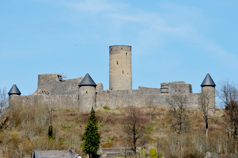 Jetzt stand nach der Tour entlang der Ahr auch der Besuch der Ruine der Gipfelburg "Nürburg" an, die hoch oben auf dem Berg gelegen, während der diversen Großereignisse live im TV schon so oft in ihrer Silhouette gezeigt wurde. Ansonsten ist eher wenig los im Umfeld der Burg "Nürburg", die man von der B 258 kommend, das Rennsport Museum direkt an der Formel 1 Strecke passierend und denn in den Rundkurs der Nordschleife einbiegend erreicht. Die Ruine ist schon von weitem gut sichtbar, so das auch der Parkplatz unterhalb der Burg ebenfalls leicht zu finden ist. Ein kurzer Anstieg zur Burg sollte niemanden abhalten, denn die Aussicht von oben lohnt die Anstrengung allemal. Der Blick reicht bis hinein in den Rundkurs der Formel 1 Strecke sowie in das gesamte Umland der Eiffel.