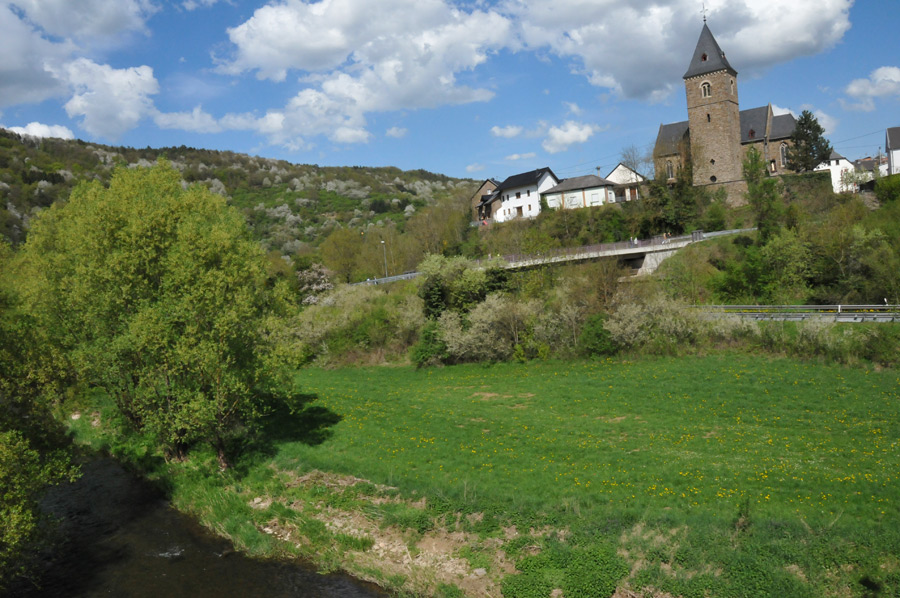 Wir fahren auf der L 92 Richtung Adenau, einem der ältesten Siedlungsorte der Eiffel in der Umgebung der Nürburg, denn bereits im Jahr 992 findet man erste Aufzeichnungen zu einem Ort namens Adenova, der in einer Urkunde Kaiser Ottos III erwähnt wird. Überhaupt gibt es eine enge Beziehung zwischen dem Ort Adenau und der Nürburg, denn der Ort gehörte zum Herrschaftsgebiet der Grafen von Nürburg und Are. Im Jahr 1162 verschenkte Graf Ulrich von Are seinen Herrenhof in Adenau an die sich seiner Zeit gerade auch in Deutschland etablierenden Johanniter. Die Ordensbrüder waren zunächst nach eigenen Vorbildern von Jerusalem und Rhodos um die Pflege und Betreuung von Kranken und Pilgern bemüht, mit dem Herrenhof in Adenau eröffneten sie nach Duisburg und Werben an der Elbe hier ihre dritte Niederlassung des Ordens.