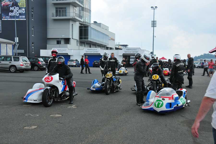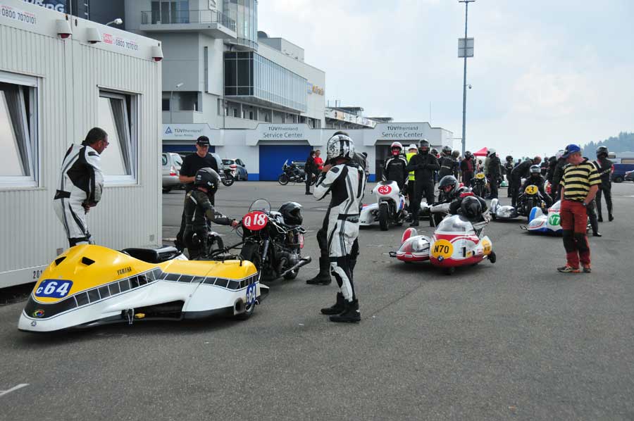 Völlig anders als bei den Solo-Motorrädern sind die Gespanne mit zwei Personen am Start, wobei der Fahrer auf den Knien hockend und das Motorrad lenkend nicht allein für Sieg oder Niederlage verantwortlich ist. Hier kommt dem Kopiloten eine große Bedeutung zu, die mitentscheidend für die spätere Platzierung ist, denn durch die Gewichtsverlagerung des Beifahrers im Beiwagen, kann die Belastung des Seitenwagenrades erhöht oder verringert werden. Diese Fahrtechnik dient der Erhöhung der möglichen Kurvengrenzgeschwindigkeit, oftmals die effektivste Möglichkeit zum Überholen. Bei Kurven zur Beiwagenseite legt sich der Beifahrer dazu aus dem Beiwagen in Richtung Kurveninnenseite, bei Kurven in die andere Richtung „turnt“ der Beifahrer in Richtung Fahrer auf das Motorrad. Nicht zu unrecht werden die Copiloten deshalb oftmals als Turner bezeichnet.