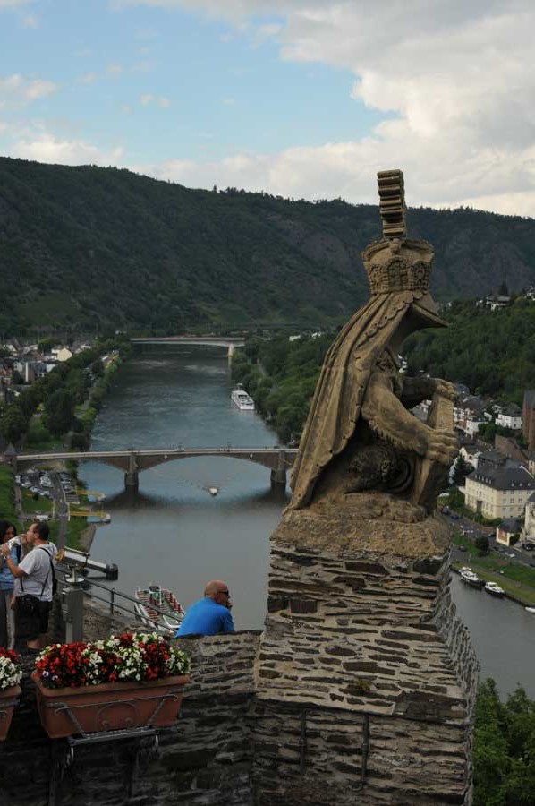 Unterwegs bereits hatten wir die Aussicht auf die Burg von Cochem, trotz des etwas trüben Wetters, von einem Parkplatz aus genutzt, den wir vorab während unserer Touren übersehen hatten. Zur Burg selbst, hier insbesondere mit dem Hinweis auf das Trinkverhalten der mittelalterlichen Bewohner, was sich sogar in speziellen Türschlössern manifestierte, hatten wir ja bereits einen Artikel verfasst. Jetzt folgen einige Informationen zur Mosel selbst, die schon in der Römerzeit dicht besiedelt und genutzt wurde. Mit Trier war ein wichtiges römisches Zentrum über die Mosel auch mit Koblenz und Köln verbunden.