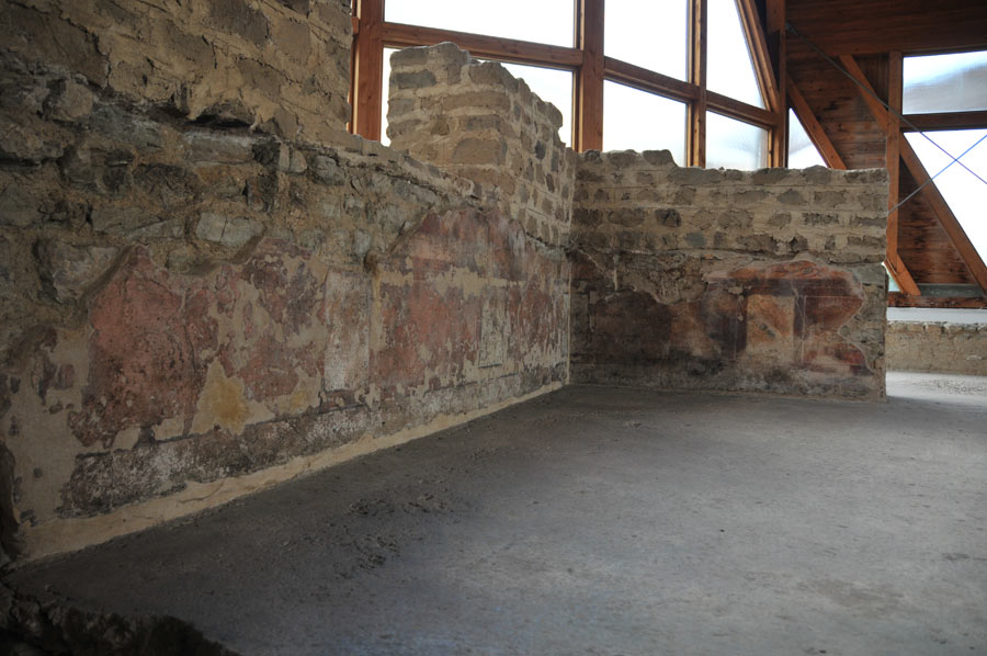 Bis zu 1,50 Meter hoch ragte das Mauerwerk noch über die Fundamente auf, so das große Flächen der Wandbemalung auf der Verputzung der Wände sichtbar wurde. Teilweise konnten sogar die Fensteröffnungen noch nachgewiesen werden, die Ein- und Zugänge der Türen sowieso. Diese Funde hatten zur Folge, das bis zum Jahresende 1980 die geplante Fahrbahn umtrassiert wurde und man einen Schutzbau errichtete. Zwischen März 1980 und dem Herbst 1990 sind insgesamt elf Grabungen unter der Leitung des Konservators Horst Fehr durchgeführt worden, die neben den Mauerresten und ihrer Bemalung tiefe Einblicke in die Gebäudetechnik ermöglichen.