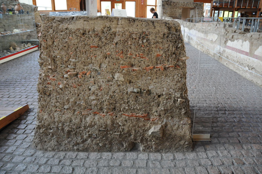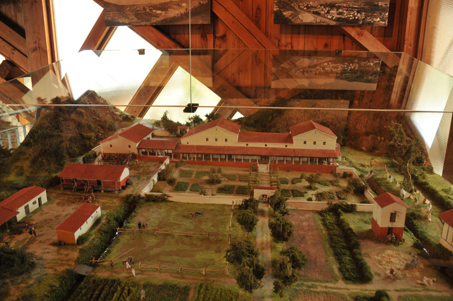 An der Rezeption ließen wir uns die geplante Route kurz bestätigen und so waren wir bereits gegen 10.00 Uhr am Museumsgebäude angekommen. Schon an der Form und der Ausführung des Museumsgebäudes ist deutlich sichtbar, welch großer Zufall hier die entscheidende Rolle bei der Entdeckung dieser Villa Rustica gespielt haben muss: Exakt eingepasst zwischen der Bundesstraße und der Abfahrt in die Stadt Ahrweiler hinein, konnte fast das gesamte Gelände der römischen Siedlungsgebäude mit diesem Schutzgebäude überbaut werden.