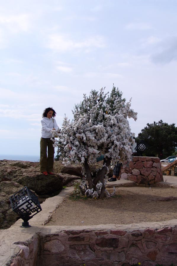 Während unserer Reisen sind wir immer wieder auf Wunschbänder oder Talismane gestoßen, die an Bäume gehängt werden. Oftmals waren sogar Zettel mit Wünschen aufgehängt, die an Grabmälern beziehungsweise religiösen Stätten aufgehängt werden, so wie auch hier an des Teufels Tanzplatz in Ayvalik. Ein Mythos der trotz Moderne weiter tief in der Bevölkerung verwurzelt ist.
