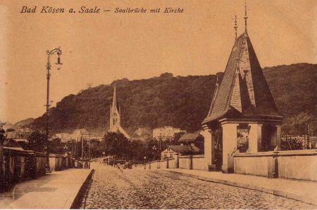 Nur wenige Kilometer unterhalb der bekannten Rudelsburg gelegen, verbindet die historisch wertvolle Saalebrücke den älteren Teil Bad Kösens rechts der Saale mit dem neueren Teil am linken Flussufer und stellt so schon seit langem einen bedeutenden Saaleübergang im Zuge der mittelalterlichen Via Regia da, deren Verlauf hier von der modernen Bundesstraße 87 aufgenommen wird.