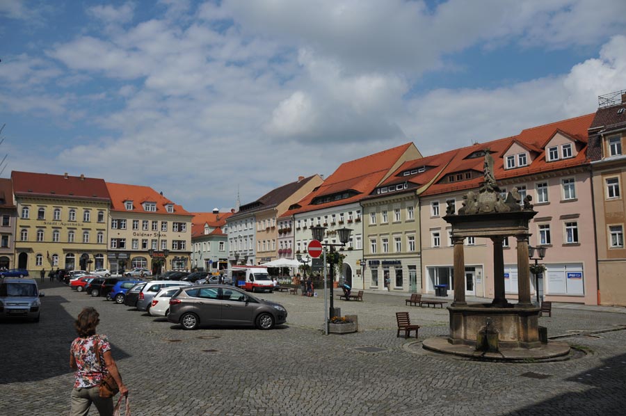 Wir machen uns mit dem Fahrrad auf, die Stadt Kamenz zu erkunden. Erst beim Anstieg in der Innenstadt fallen uns die doch erheblichen Höhenunterschiede der Stadtregion auf, so beschließen wir die Innenstadt zu Fuß zu erkunden.