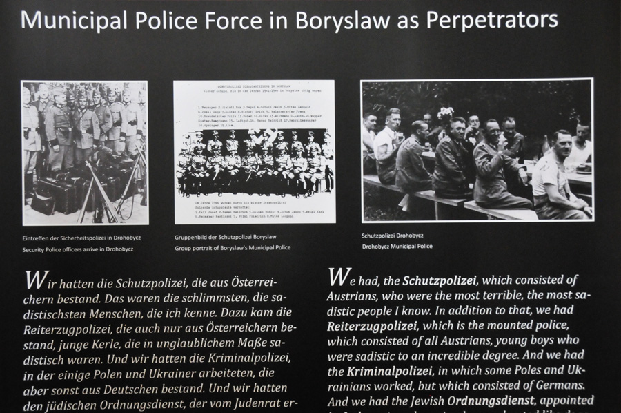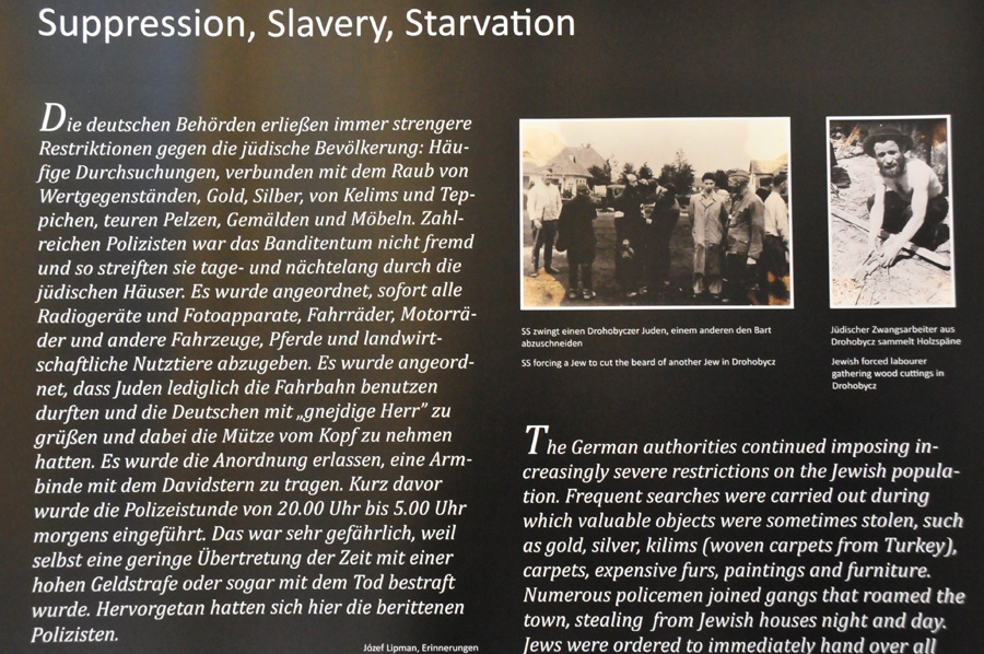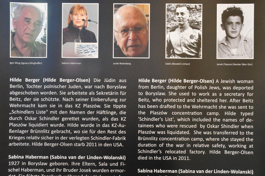 Wir waren überrascht als wir in der Stadtkirche auf eine Ausstellung zum Holocaust stießen, die letztendlich die tragischen Geschichten einiger Familien während des Holocausts beschrieben, parallel dazu aber auch die Geschichte von Menschen, die während des Nationalsozialismus zu helfen versuchten. An dieser Stelle sei auf Hilde Berger verwiesen, einer Jüdin aus Berlin, die nach Boryslaw abgeschoben worden war. Sie arbeitete als Sekretärin für Rudolf Beitz, der sie zu schützen versuchte. Nach seiner Einberufung zur Wehrmacht kam sie in das KZ Plaszow. Sie tippte hier "Schindlers Liste" mit den Namen der Häftlinge, die durch Oskar Schindler gerettet wurden, als das KZ Plaszow liquidiert wurde.