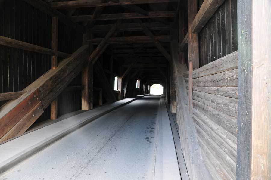 Die Historische Holzbrücke ist ein klassisches Nadelöhr, das nur einspurig befahren werden kann. Da es keine Ampeln gibt, bedarf es der gegenseitigen Verständigung. Erschwerend kommt hinzu, dass beide Einfahrten in Kurvenbereichen liegen und die Brücke nur schlecht einsehbar ist. Für Fußgänger steht seit dem Umbau ein Fußweg innerhalb der Brücke zur Verfügung.