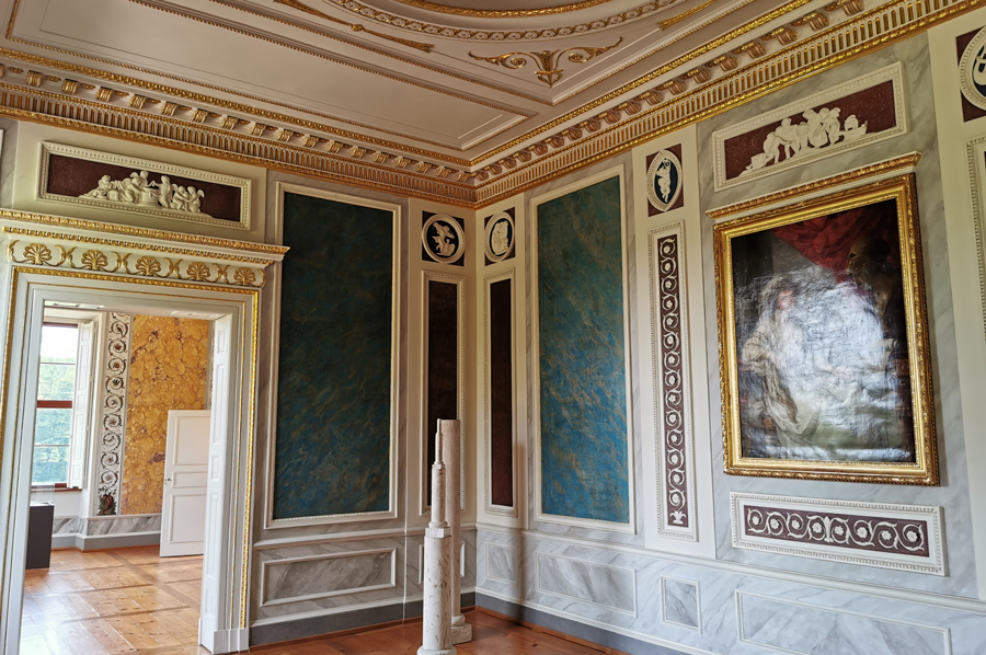 Besichtigt werden kann die Vorhalle, die auch als Speisezimmer diente, der Blaue Salon, Schauplatz festlicher Geselligkeit sowie der Gelbe Salon, das Arbeitszimmer des Herzogs. Die angrenzenden Räume wurden als Schlaf- und Ankleidezimmer genutzt. Im Untergeschoss präsentiert eine Ausstellung die Entwicklung des Parks an der Ilm seit dem späten 18. Jahrhundert.