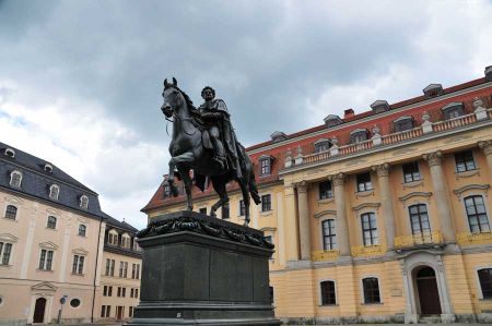 Nach dem Parken des Fahrzeugs in der Schützengasse waren wir bereits nach wenigen Metern direkt am Beginn der Fußgängerzone am Goetheplatz angekommen, wo uns eine mehr als mannsgroße Skulptur der Herren Goethe und Schiller begrüßte. Ein direkt gegenüber befindliches Straßenschild wies auf die Wohnhäuser der Schriftsteller hin, die natürlich zu den Hauptattraktionen der Stadt Weimar hinsichtlich des boomenden Tourismus zählen.
