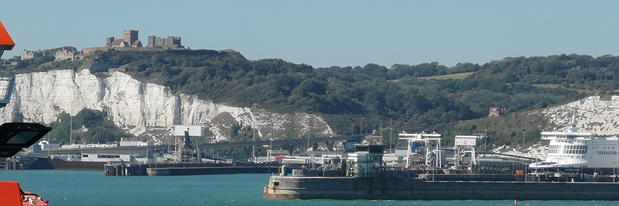 Dover - Der etwa 563 Kilometer lange Ärmelkanal setzt als Meeresarm den Atlantik in Richtung Nordsee fort und verjüngt sich dabei wie ein Kleidungsärmel. An seiner engsten Stelle liegt die Fährverbindung von Calais nach Dover, die wir gerade überquert hatten.
