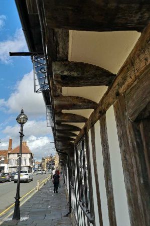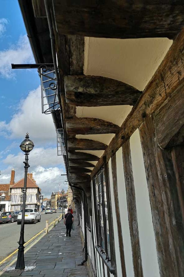Viele der frühesten und wichtigsten Gebäude der Stadt befinden sich an der so genannten historischen Wirbelsäule von Stratford-upon-Avon, die einst die Hauptroute vom Stadtzentrum zur Pfarrkirche war. Die Route der historischen Wirbelsäule beginnt an Shakespeares Geburtshaus in der Henley Street. Es geht weiter durch die Henley Street bis zum oberen Ende der Bridge Street und dann in die High Street, wo sich viele elisabethanische Gebäude befinden, darunter das Harvard House. Die Route führt weiter durch die Chapel Street, wo sich Nash's House und New Place befinden. Das historische Rückgrat verläuft entlang der Church Street, wo sich Gildengebäude aus dem 15. Jahrhundert sowie Gebäude aus dem 18. und 19. Jahrhundert befinden. Die Route endet dann in der Altstadt, die Hall's Croft und die Holy Trinity Church umfasst.