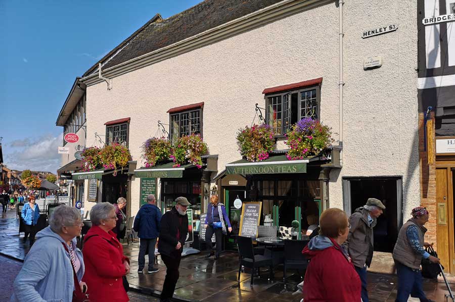 Stratford-upon-Avon - Zwar regnerisch und windig, aber die Nähe zur altehrwürdigen, uns aus dem Englisch Unterricht noch in Erinnerung verbliebenen Stadt als Geburtsort Shakespeares, lockte es uns dann doch zur Fahrt in die Stadt, trotz der Warnung vor touristischen Strömen aus Fernost.