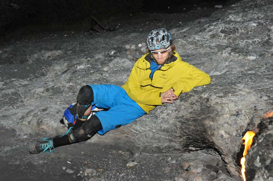 Wichtig für ihn sind auch die Bekleidungshersteller, die ihn zur Präsentation neuer Kollektionen anmieten. Meistens geschieht dies zweimal im Jahr, jeweils zur Präsentation der Sommer- oder Winterkollektion. So wird auch der Erkundungstrip der Firma EVOC jetzt parallel zur Vorstellung der neuen Rucksacktypen und diverser Bekleidungen genutzt. Fotos werden im nächsten Katalog wieder zu finden sein.
