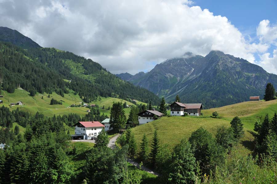 Als Teil des österreichischen Bundeslandes Vorarlberg gehört das Kleinwalsertal mit der Gemeinde Mittelberg zum Bezirk Bregenz, was an sich ja noch nichts Ungewöhnliches bedeutet. Fährt man mit dem Auto über Oberstdorf in das Tal hinein, überquert man also die österreichische Staatsgrenze, die allerdings, wie überall seit gemeinsamer EU-Mitgliedschaft nicht mehr als Staatsgrenze zu spüren ist. Gut so! Interessant allerdings ist, das diese Straße von Oberstdorf kommend, die einzige Verkehrsanbindung an das Straßennetz darstellt, denn eine direkte Verkehrsanbindung zum übrigen Vorarlberger Land gibt es nicht. Mit anderen Worten ist das Tal nur von der Nachbargemeinde Oberstdorf in Bayern, also Deutschland, aus zu erreichen. Aus deutscher Sicht ist das Kleinwalsertal eine so genannte funktionale Enklave, die auch Pene-Enklave genannt wird. Allein vor diesem Hintergrund eine Region, die auf eine Vielzahl besonderer Umstände verweisen kann. Wir werden darauf gesondert zurück kommen.