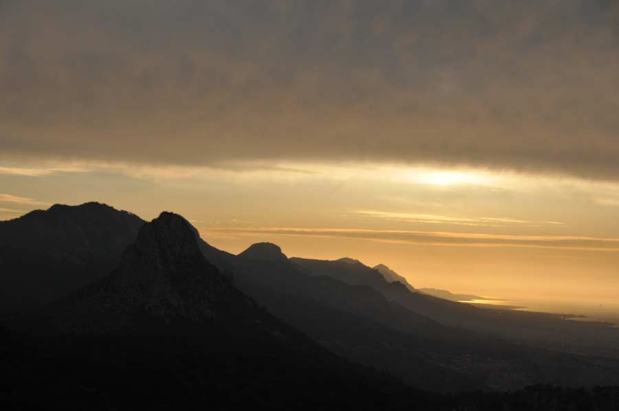 Das Besparmak Gebirge, auch Pentadaktylos Gebirge genannt, mit den drei mächtigen Burgen St. Hilarion, Buffavento und Kantara, zieht sich entlang der Nordküste der Insel Zypern.