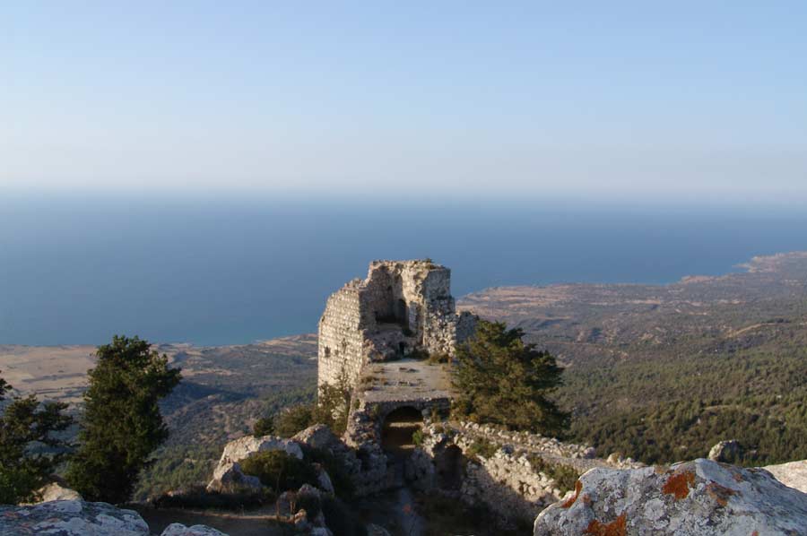 Jetzt steht die riesige Burganlage von St. Hilarion, die am Gebirge zu kleben scheint, als Besichtigungspunkt mit auf dem Wanderprogramm. Natürlich dürfen die Fernblicke und der Blick nach Girne / Kyrenia aus der Vogelperspektive nicht unerwähnt bleiben.