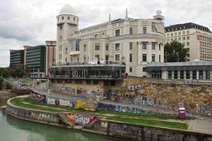 Entlang des Wien Flusses führen kombinierte Fußgänger-Radwege bis in die Innenstadt hinein, unser Ziel ist zunächst der Karlsplatz. Dann den Stadtpark durchquerend erreichen wir den Donaukanal unweit des Hundertwasserhauses, fahren dann weiter bis zum Prater, natürlich mit obligatorischen Foto vor dem bekannten Riesenrad. Durch die Parklandschaft geht es weiter bis zum Ernst-Happel-Fußballstadion, wo gerade die Sportvereine Wiens einen Tag der offenen Tür ihrer Einzelsportvereine veranstalten.