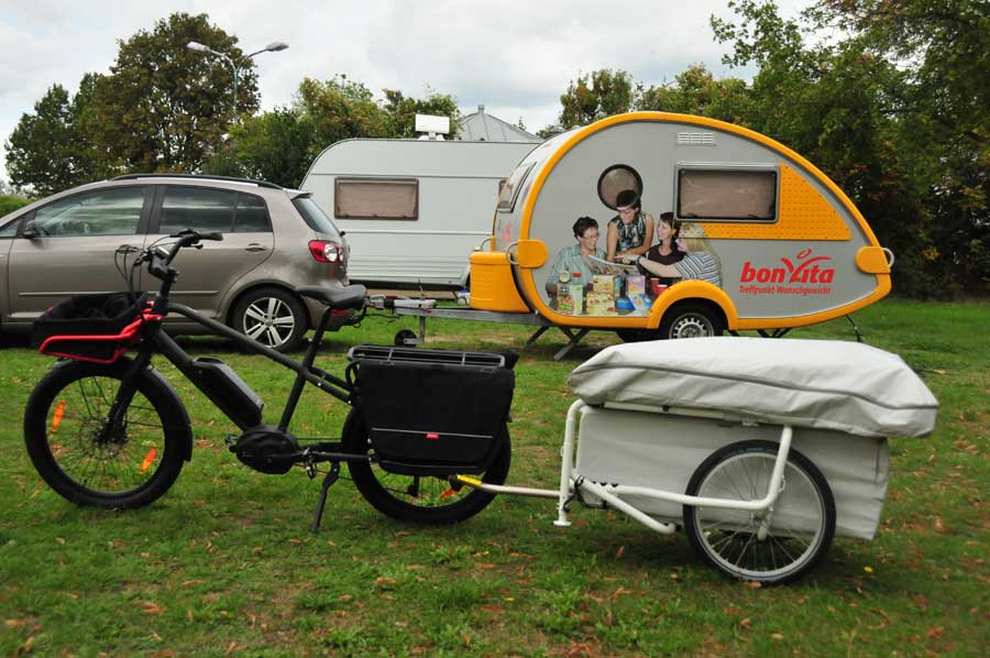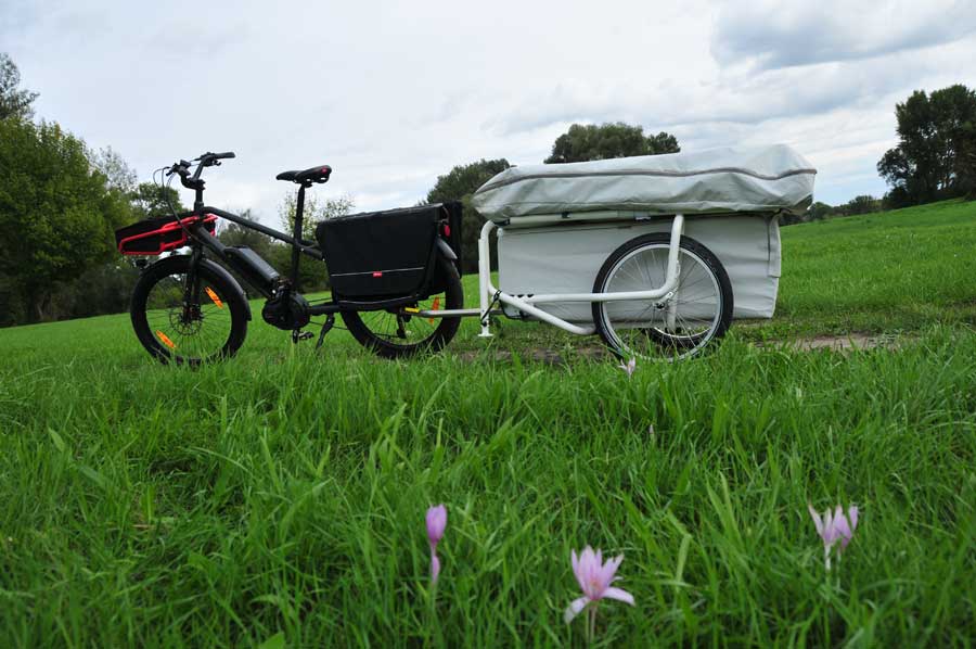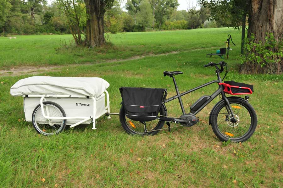 Auch wir wurden neben anderen „Testpiloten“ von CEO Gernot Rammer, zu einer Probe- und Erkundungstour in die Murlingengasse nach Wien eingeladen worden, wo neben dem B TURTLE auch ein ganz neues E-Multifunktionsrad der Marke "Benno" zur Erprobung bereit stand. Das Benno Bike bietet in Kombination mit dem B TURTLE einen gewaltigen Stauraum. Große Packtaschen am Gepäckträger hinten montiert, genau wie ein Lastenträger vorn am Rad (Platz genug auch als Sitzfläche für den vierbeinigen Begleiter), kurz viel Reise-Gepäck lässt sich so regensicher verstauen, hinzu kommt die gesamte Ladefläche des Mini-Caravan. Stauraum genug für Mehrtagestouren.