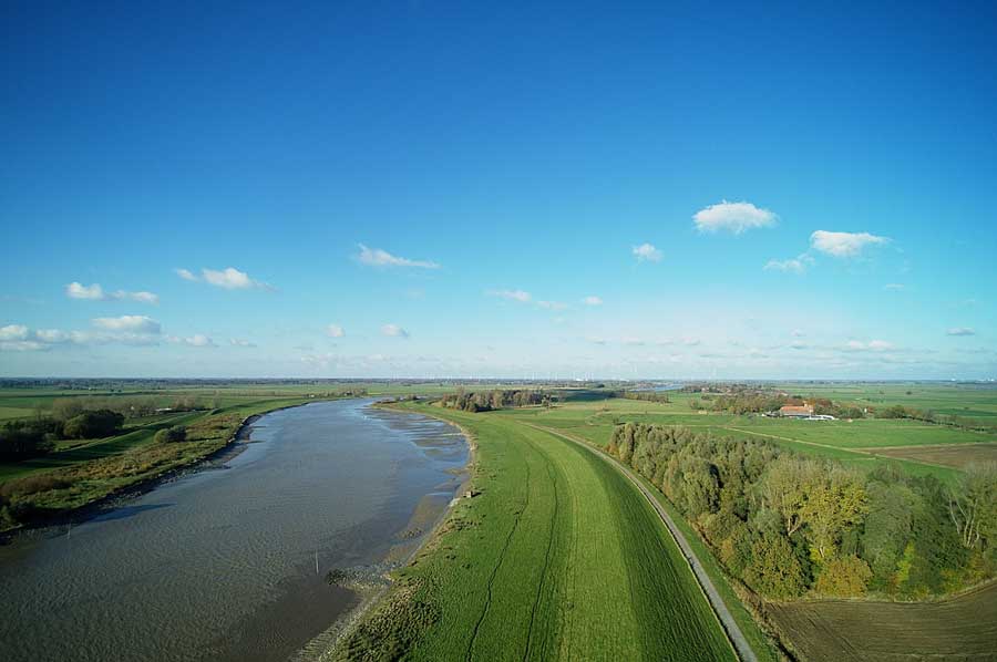 Der Weser-Radweg verläuft an der Oberweser meist nahe am Wasser, an der Mittelweser zum Teil weitab vom Fluss und ab Bremen lange Strecken hinterm Deich.
