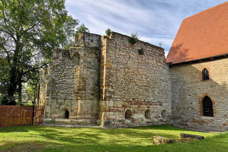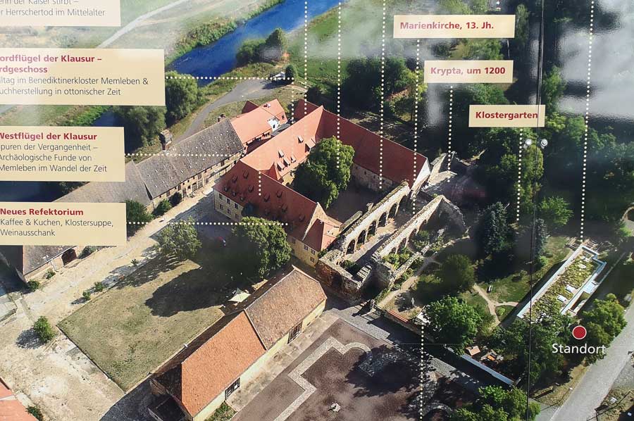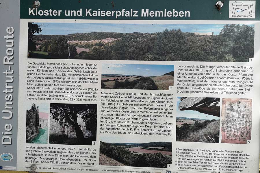 Wir waren mit den Rädern unterwegs entlang der Unstrut, wo wir auf die kleine Ortschaft Memleben stießen, die ein Ortsteil der Gemeinde Kaiserpfalz im westlichen Burgenlandkreis unweit von Nebra und Freyburg ist.