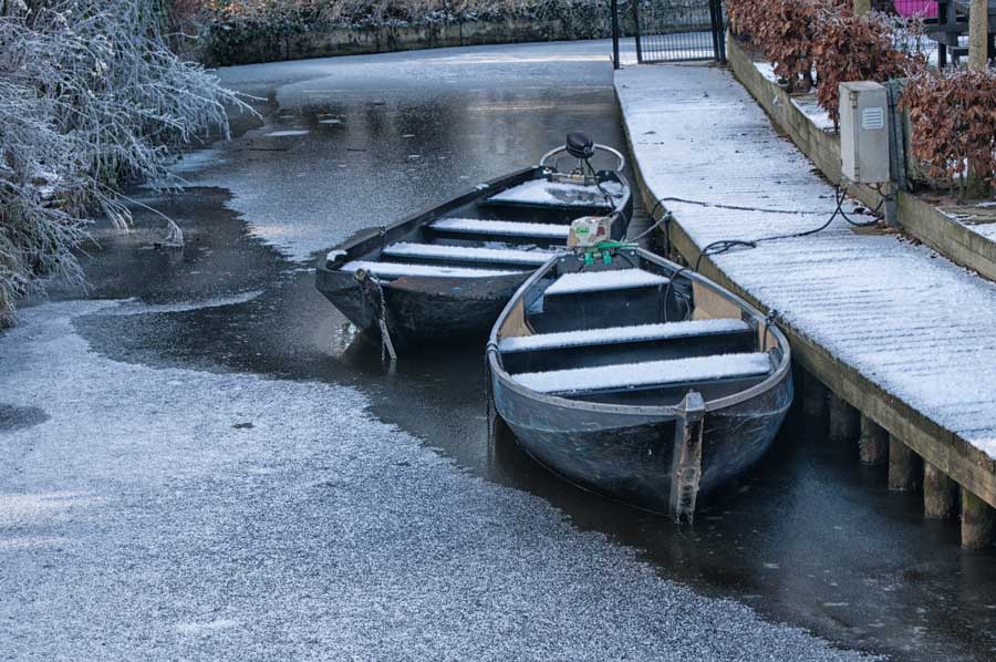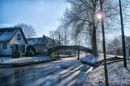 Das autofreie Giethoorn ist aber der absolute, touristische Anziehungspunkt, der von mehr als 1 Million Touristen pro Jahr besucht wird. Wer also liebe etwas weniger Menschen um sich haben möchte, dem sei die kühlere Jahreszeit durchaus empfohlen. Man muss ja nicht ins Wasser fallen. Und ein wenig Schnee ergibt ein völlig anderes Giethoorn, sehenswert allemal. Der Besucherstrom bis heute ist auch einem alten Film zu verdanken, denn ab 1958 wurde der Film „Fanfare“ des Regisseurs Bert Haanstra (deutscher Titel: „… und die Musik bläst dazu“) in Giethoorn gedreht, der allein von 2,6 Millionen Zuschauern in niederländischen Kinos gesehen wurde.
