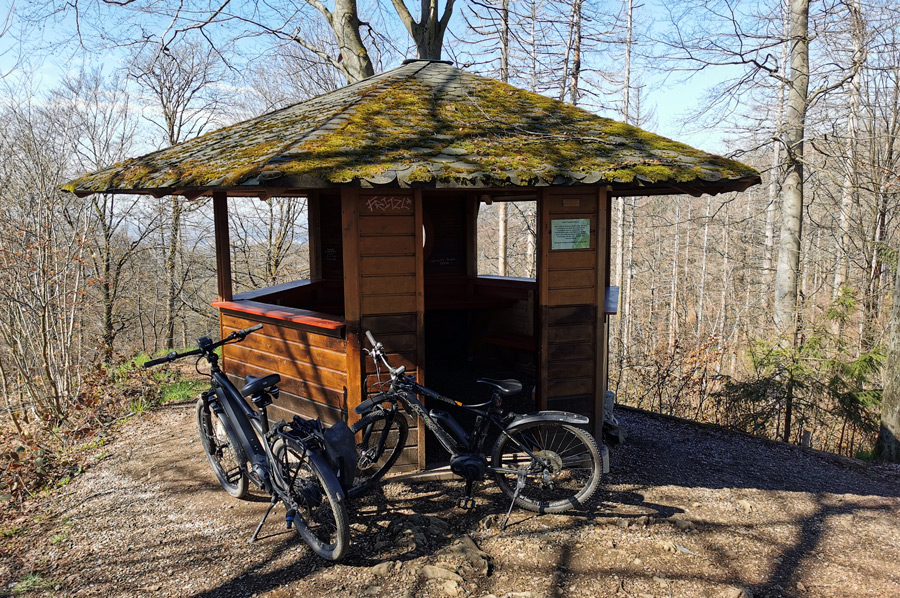 Wir setzen unseren Weg fort und erreichen kurz darauf den Ort Sieber und folgen dann dem Forstweg in Richtung Hanskühnenburg, einem doch manchmal recht steilem Aufstieg, der unsere E-Bikes entsprechend beansprucht. War zunächst daran gedacht auch noch zur Hanskühnenburg zu fahren, entscheiden wir uns am Abzweig doch für den Rückweg zur Magdeburger Hütte direkt an der B 242, die uns dann zurück zum Campingplatz bringt. Eine gute Entscheidung, denn wenig später ist der Akku leer, zu stark die Nutzung wohl vor allem am Teilstück Sieber – Hanskühnenburg.