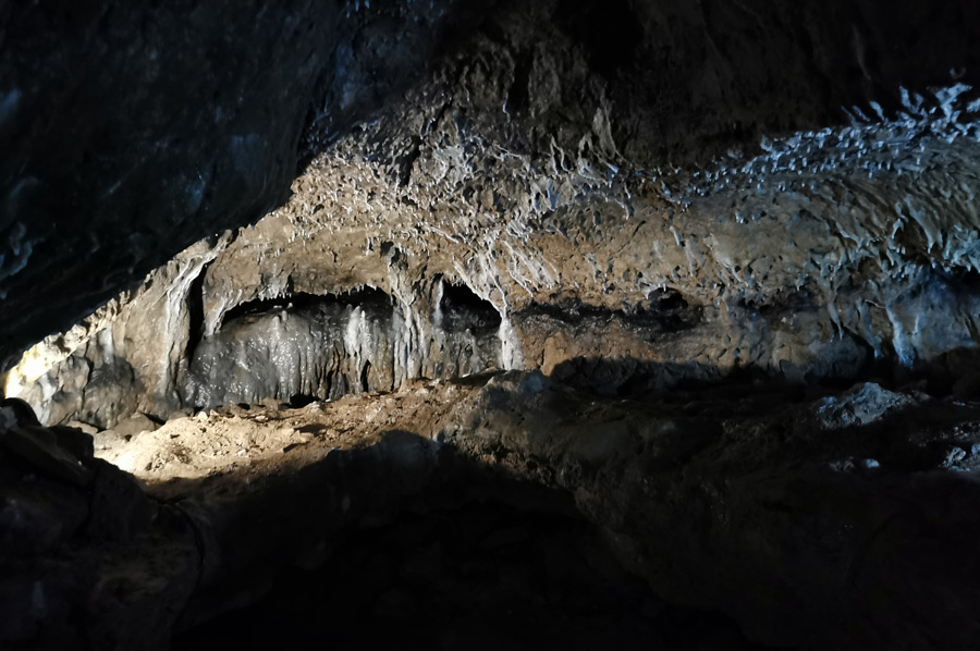 Uns werden die Sedimentschichten im Inneren der Höhle als ein geologisches und paläontologisches Forschungs-Archiv erläutert, die Knochenreste von Tieren, die seit dem Eiszeitalter im Inneren verendeten sowie durch Raubtiere oder Menschen hineingeschleppt wurden, in großer Zahl enthalten und bislang nur teilweise ausgegraben wurden. Bisher konnten anhand der zahlreichen Knochenfunde über 70 Tierarten wissenschaftlich bestimmt werden, darunter 60 Säugetierarten wie Höhlenbär, Höhlenlöwe und Wolf. In der Höhle herrschen wegen ihrer ganzjährig niedrigen Durchschnittstemperatur günstige Erhaltungsbedingungen für das Knochenmaterial. Auch wegen der chemischen Bodenzusammensetzung aus kalkreichem Material erfolgt keine Demineralisierung der Knochen.