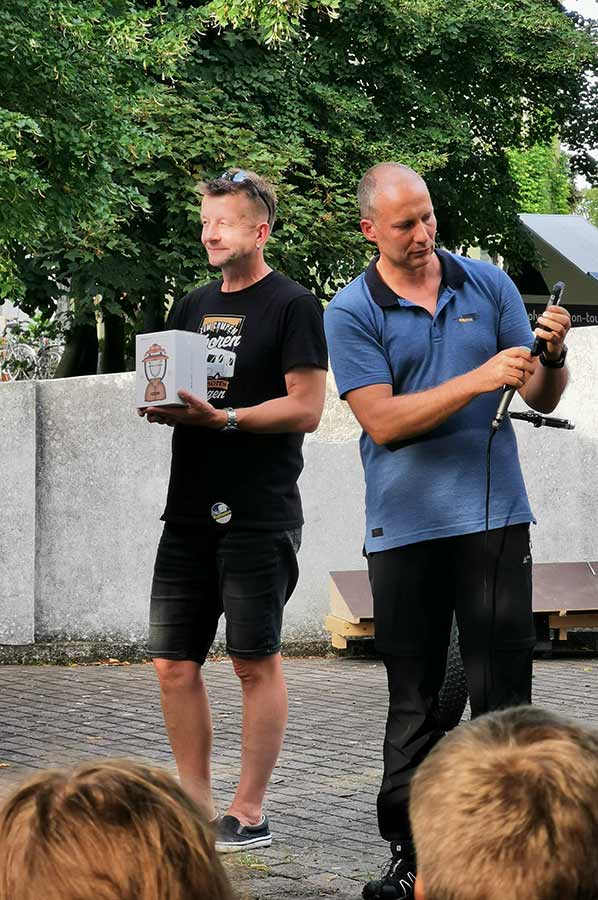 Jörg: Die Anzahl der Lose die gekauft werden können, richtet sich nach der Anzahl der Teilnehmer! Die Preise, die gewonnen werden können, sind den ganzen Tag über ausgestellt.