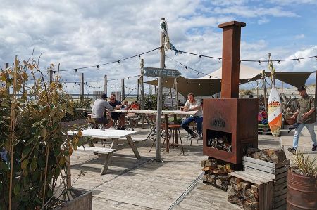 Am Strand befinden sich hier die Strandpavillons von Zeezicht, Zilt aan Zee, Noordzee, Zuidpier und Makai Beach, die überwiegend ganzjährig geöffnet sind, auch wenn keine Badesaison ansteht, denn durch die Lage der Südmole entsteht eine Wellenströmung, die ideal zum Wind- und Kitesurfen ist. Was sportlich aktive Menschen auch bei Kälte nicht abschreckt. Da wir kurz vor der Rückreise in die Heimat waren, wollten wir gern noch ein paar Stunden am Strand verbringen (auch um einige Köstlichkeiten vor Ort zu genießen), auch wenn die Temperaturen das Baden kaum noch erlaubten.