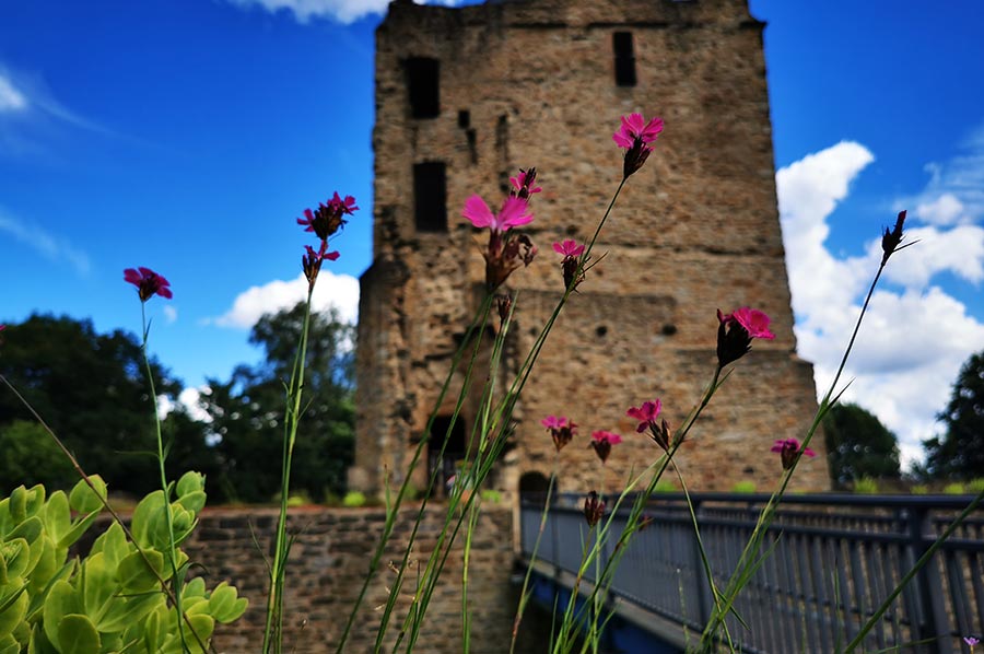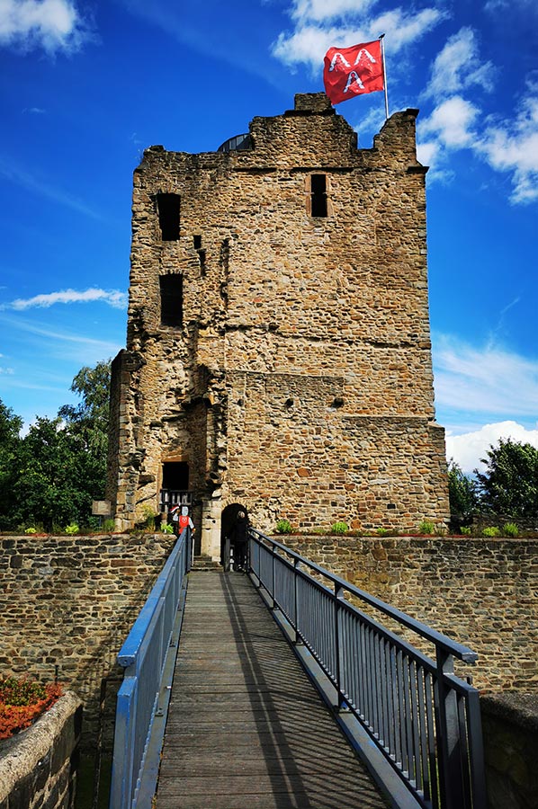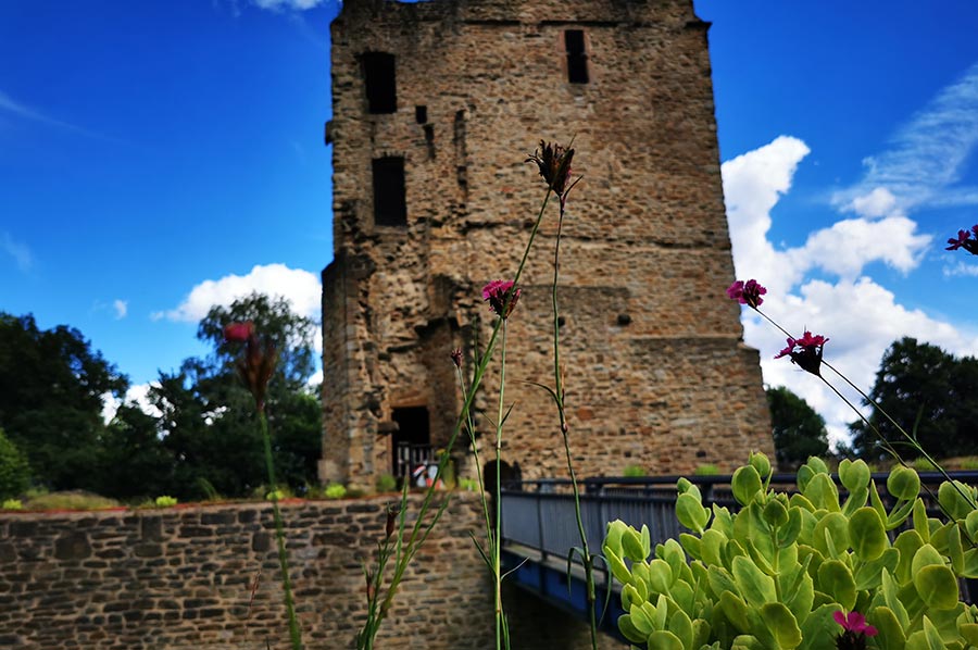 Nach dem Exkurs soll es aber jetzt weitergehen, denn die Burgruine Burgaltendorf ist ja das Ziel. Ganz im Südosten der Stadt Essen, nahe der Grenze zu den Nachbarstädten Bochum und Hattingen, liegt im Stadtteil Burgaltendorf eine romanische Burgruine mit dem wohl am besten erhaltenen Wohnturm in ganz Nordrhein-Westfalen.