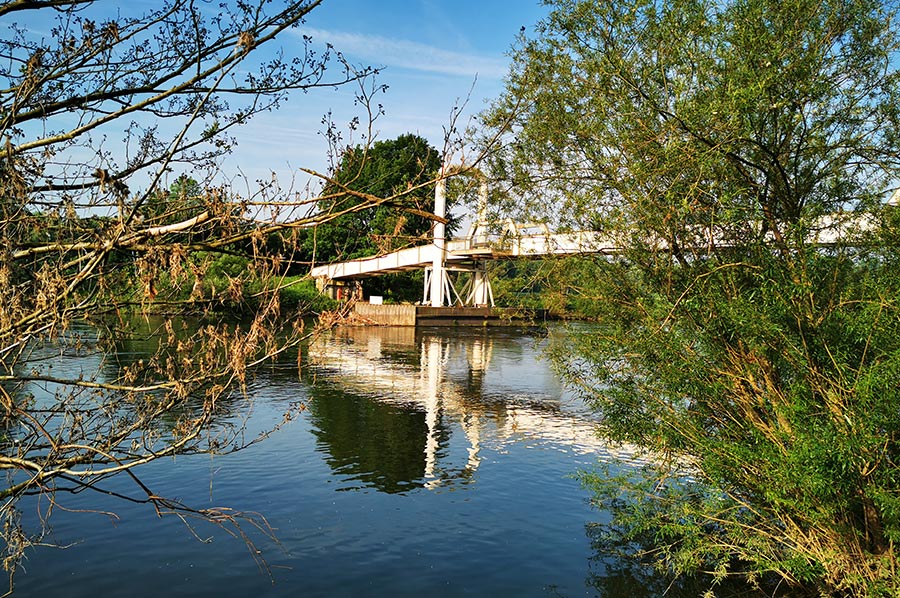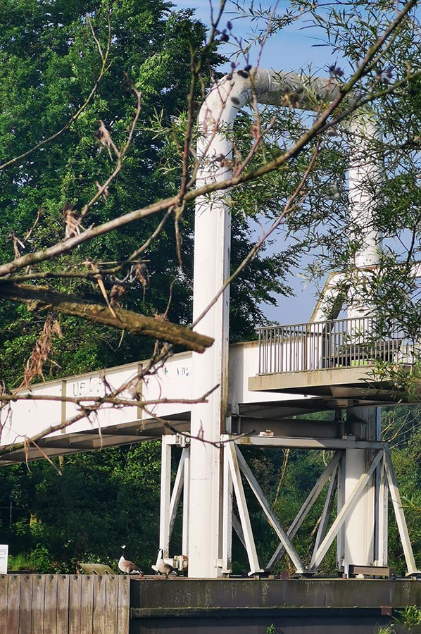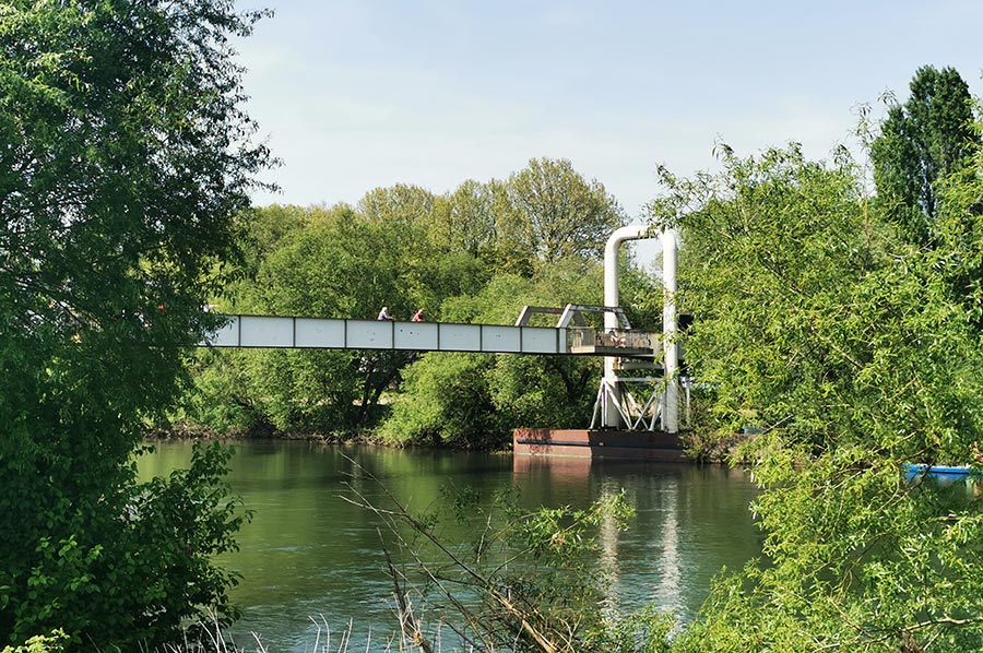 Heute als Schwimmbrücke für Fußgänger und Radfahrer ist allein die Geschichte der Brücke schon so interessant, dass sich ein kleiner Exkurs lohnt, zumal die heutige Brücke den Stadtteil Essen-Horst mit der Altendorfer Seite und somit mit dem Ruhr-Radweg verbindet.